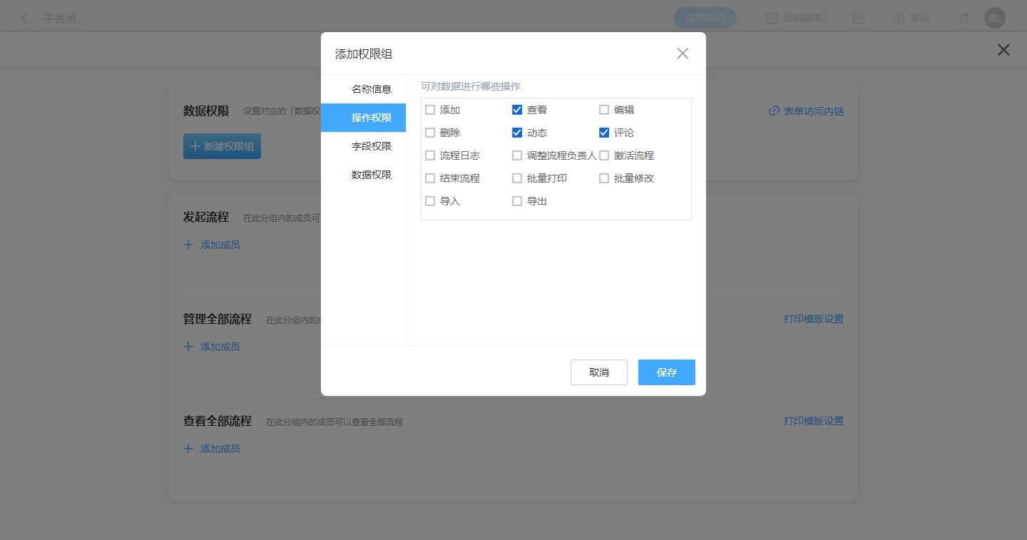 报表的操作权限同样可以设置数据动态与评论的权限,需要管理员添加自定义权限。