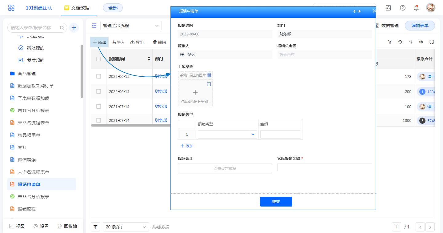 • 系统字段:提交人、提交时间、更新时间、流程决策、流程状态、数据ID