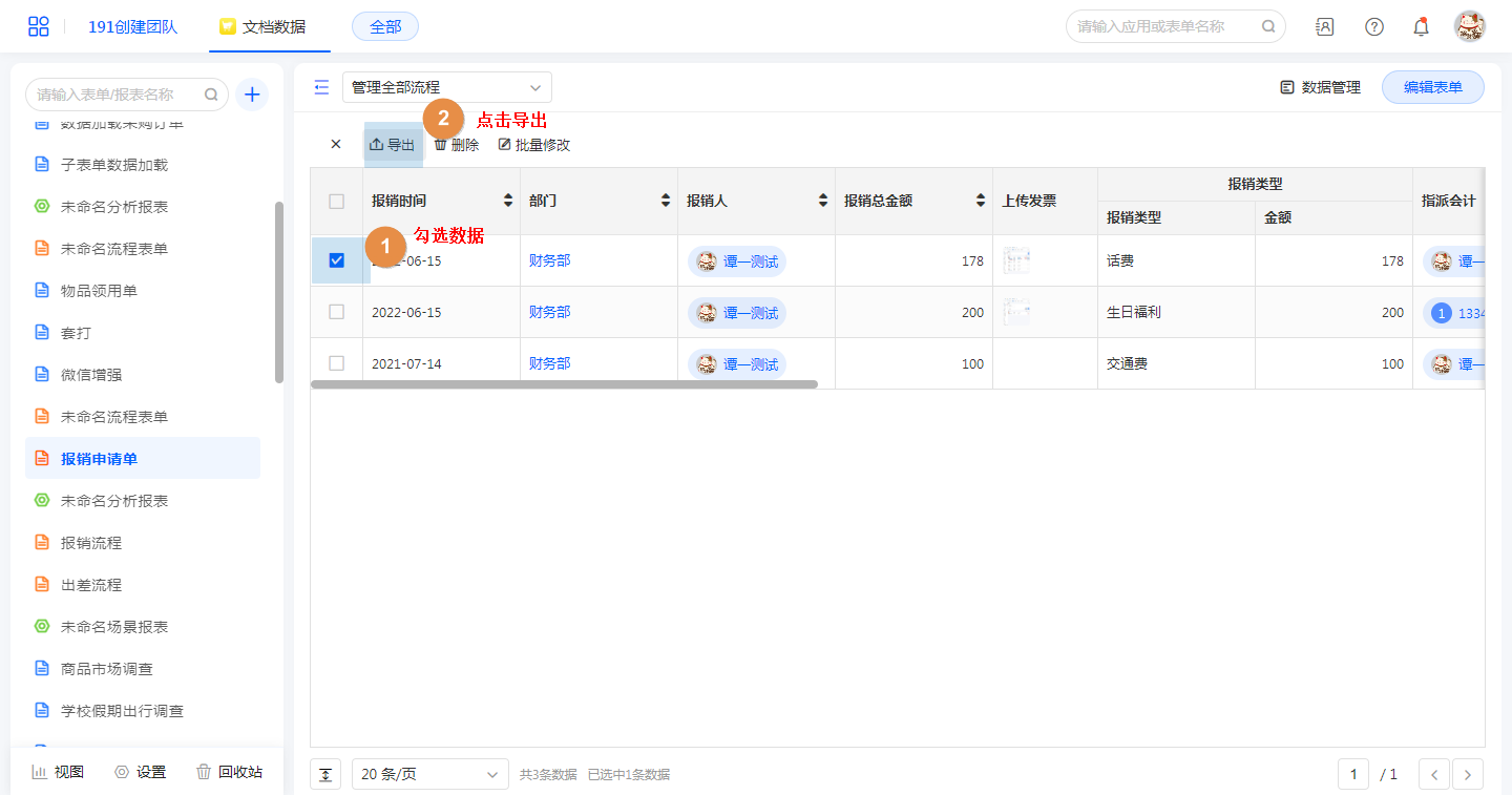• 导出勾选数据
