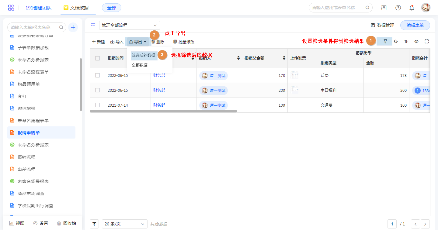 • 导出筛选后的数据