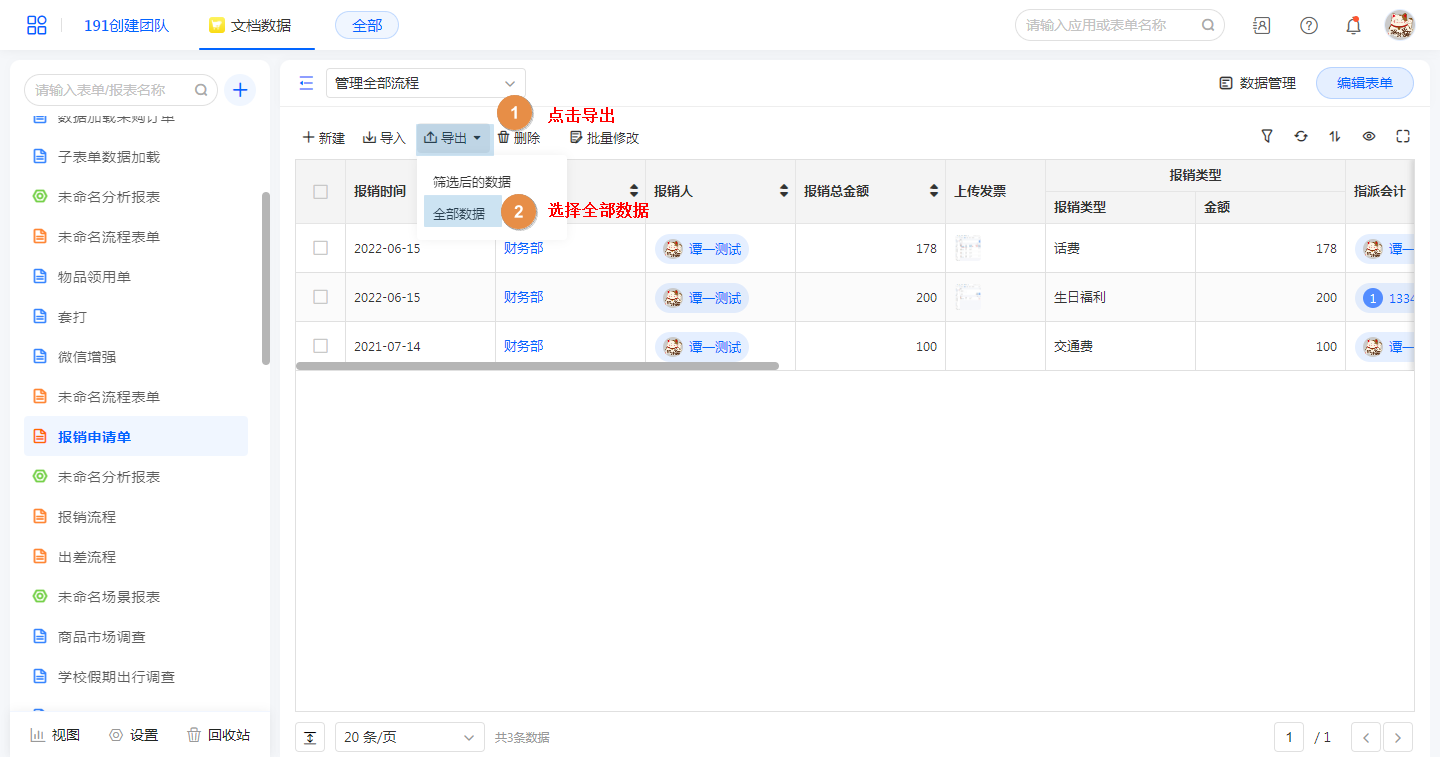 • 导出全部数据