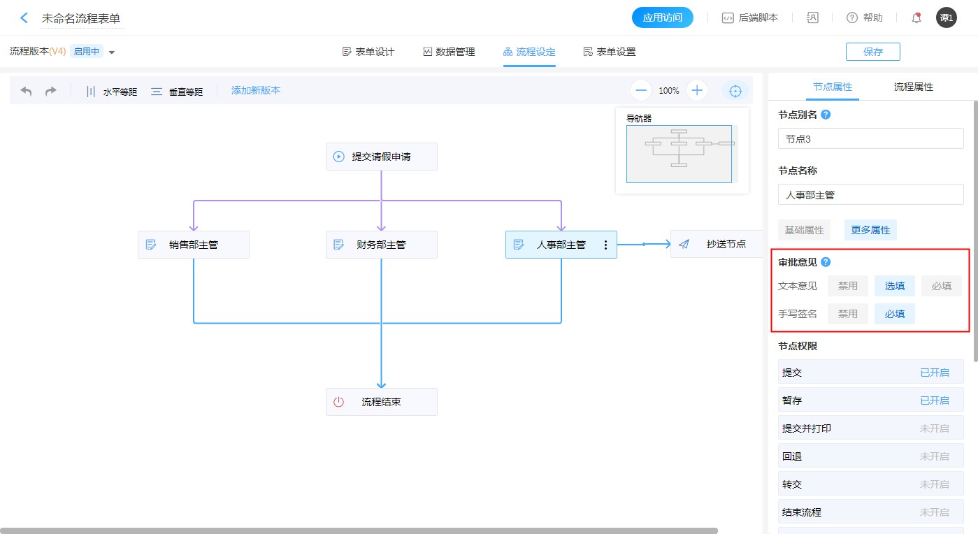 审批意见指的是流程在流转过程中,节点负责人通过提交文本意见或书写签名来处理流程的一种方式。