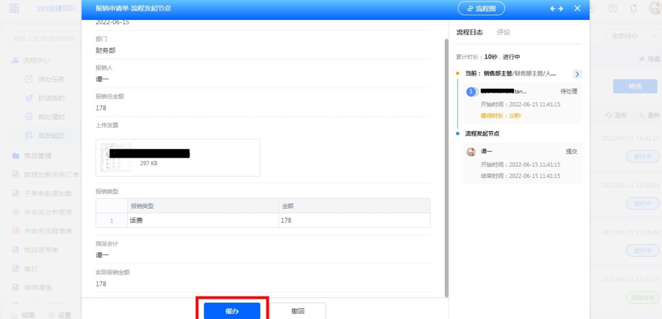 流程催办需手动开启,且对整个流程生效,无法单独设置某一节点