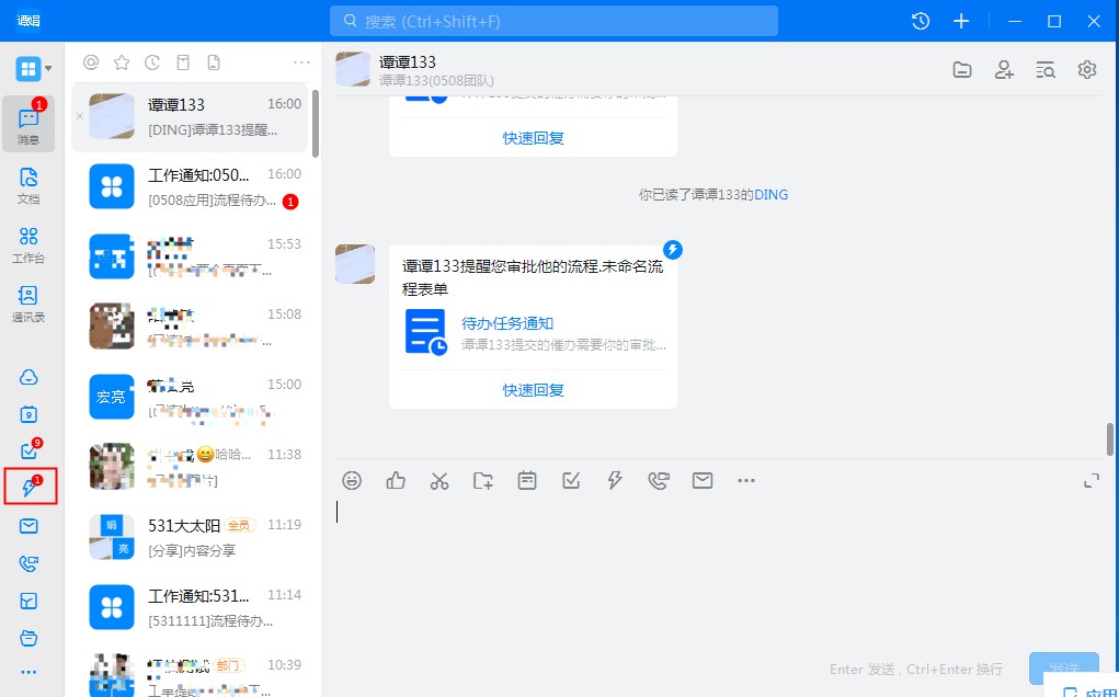 流程节点负责人收到催办后,有 DING消息,并在我的待办下,发现流程有催办标识。