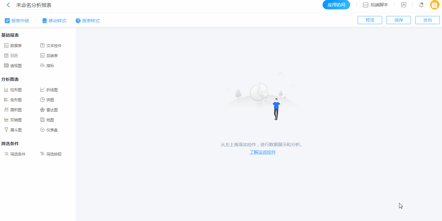 平台的报表体系,支持报表菜单,在报表的表头上方,支持添加自定义按钮,可对接功能插件、后端、数据助手或者弹出表单、报表。