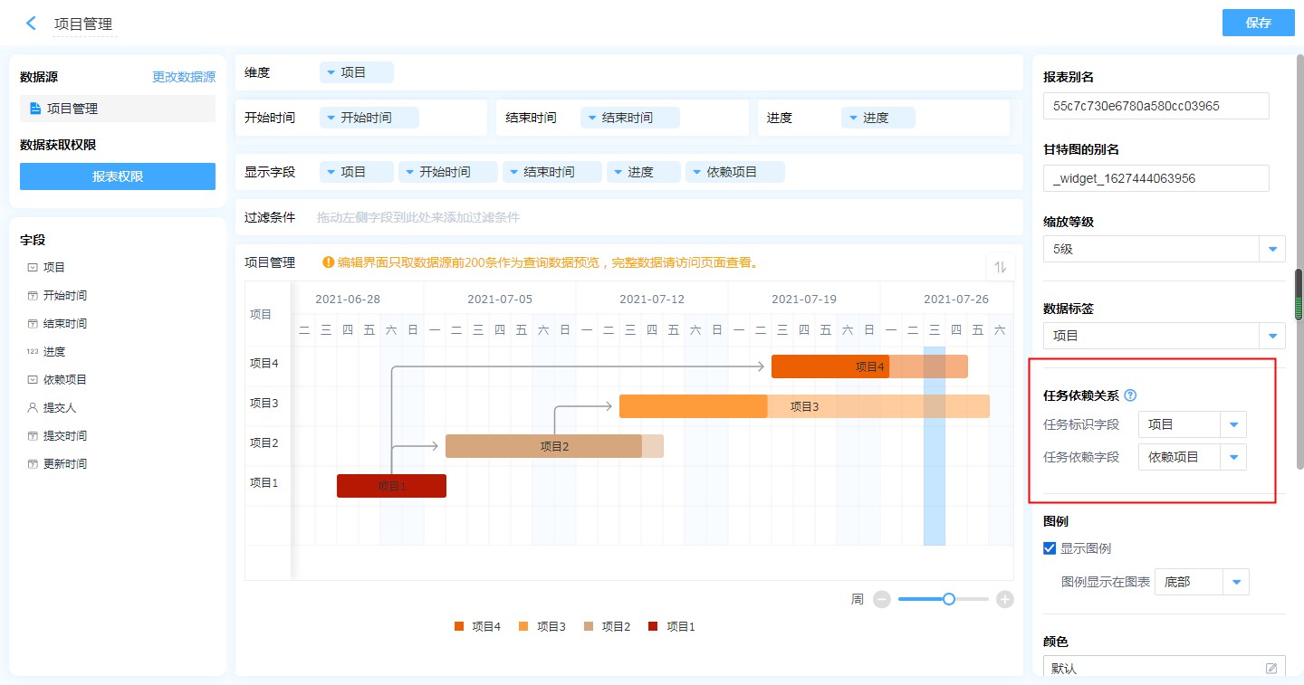 甘特图不支持公式字段。