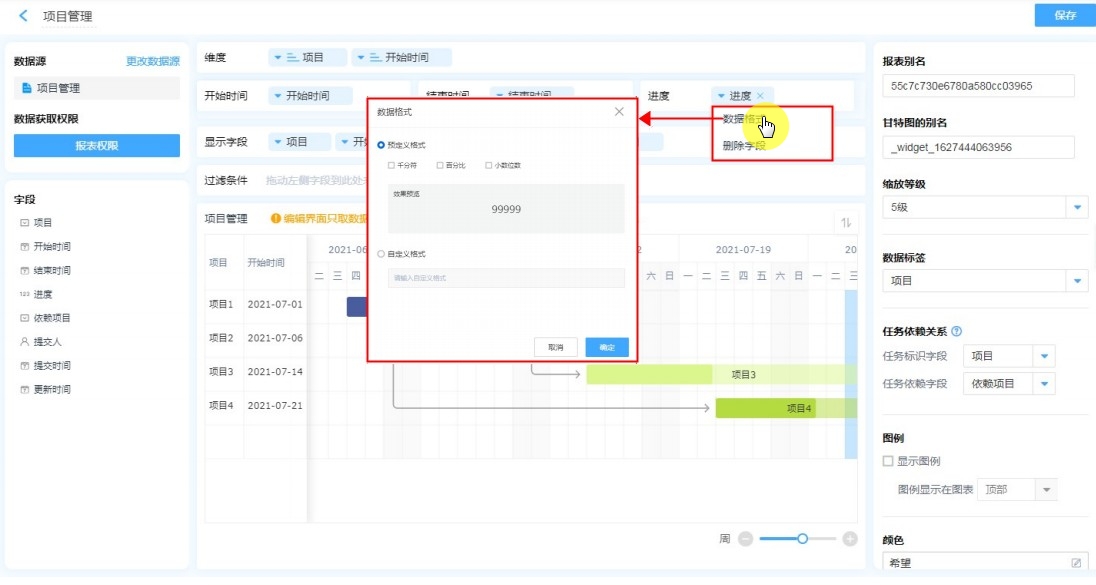 进度字段可以支持数据格式、删除字段。