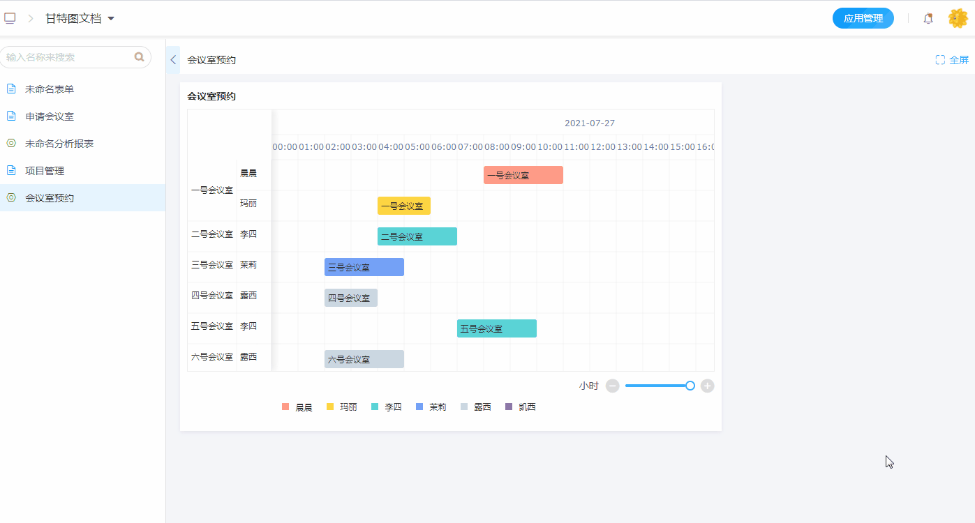 以会议室预约为例进行一个甘特图的制作。