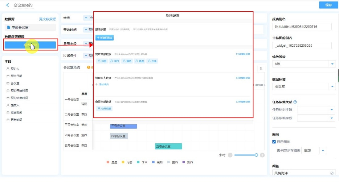 被发布的成员点击报表,可以看到刚刚设置的甘特图,并使用甘特图。 具有相关权限的成员可以: