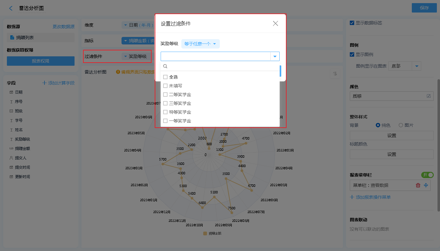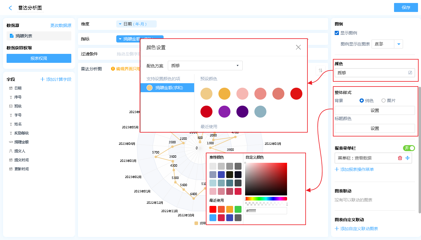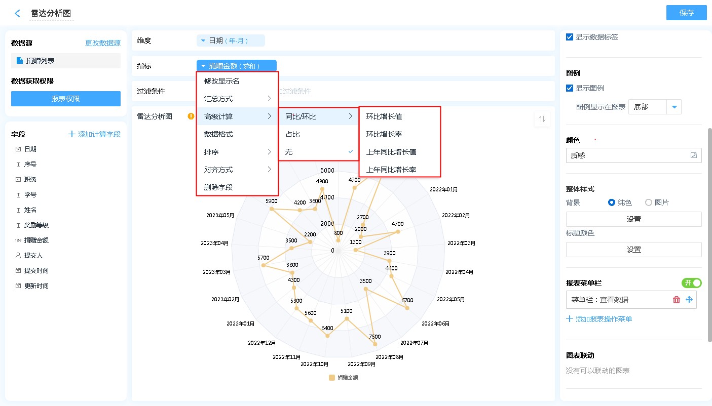 雷达图的右侧菜单主要用来对雷达图进行各种设置。