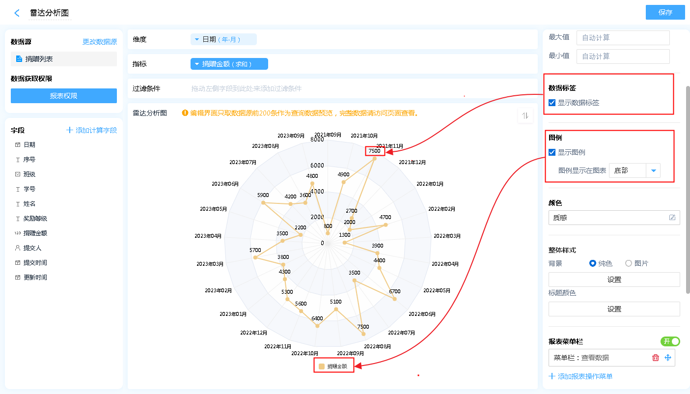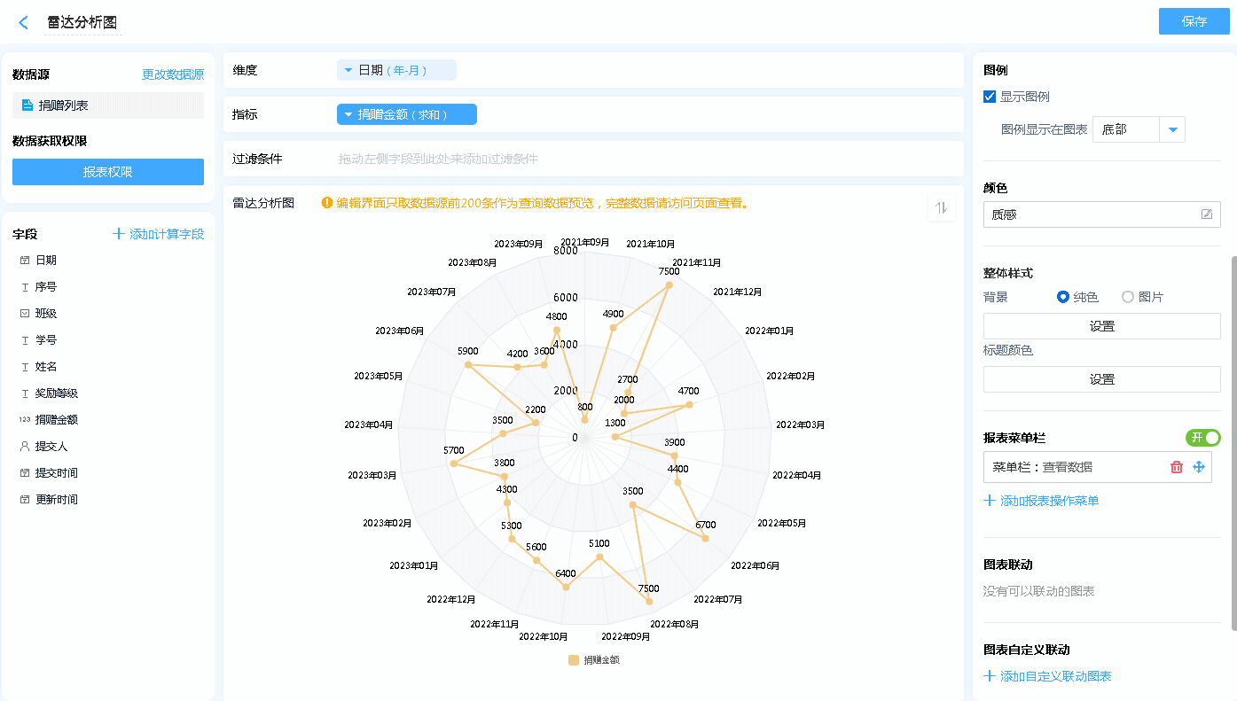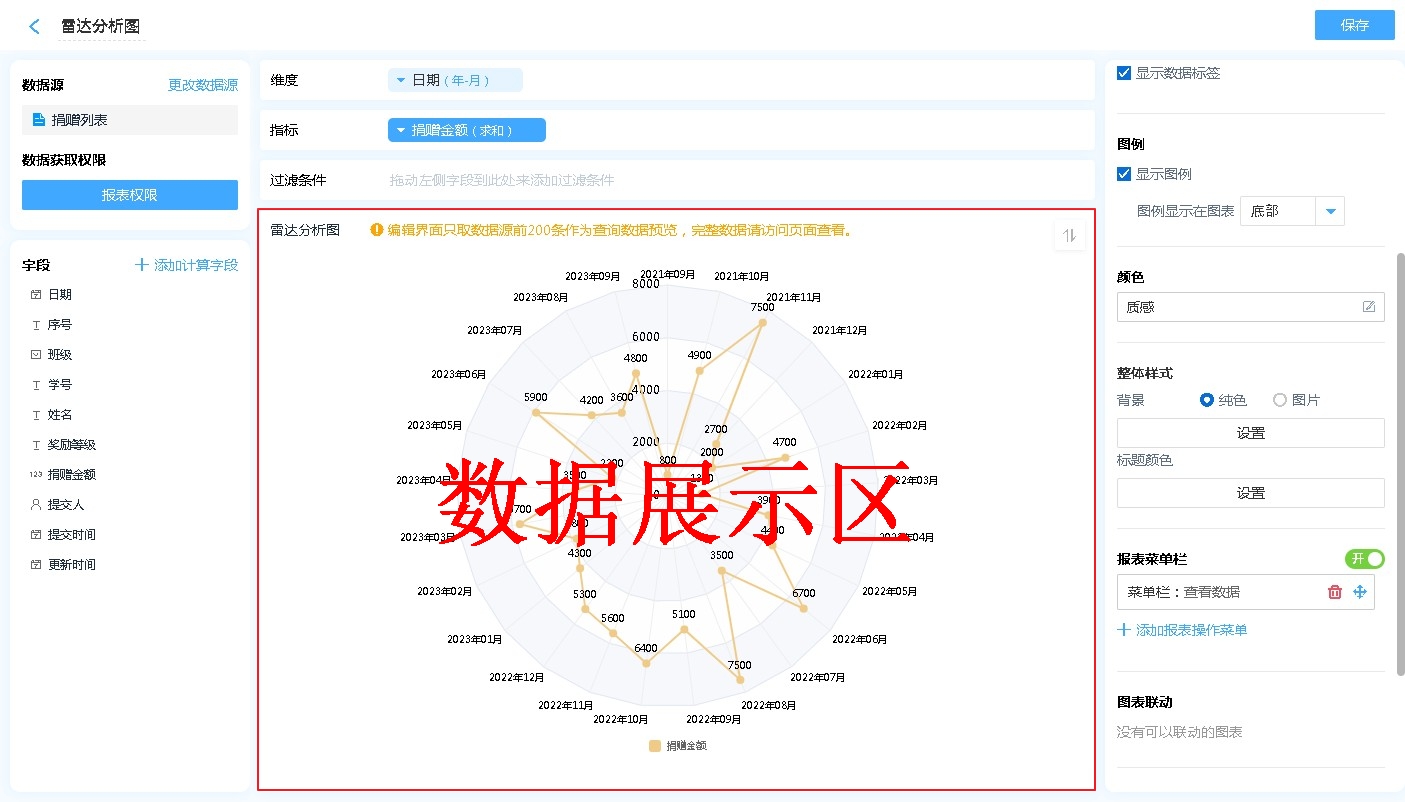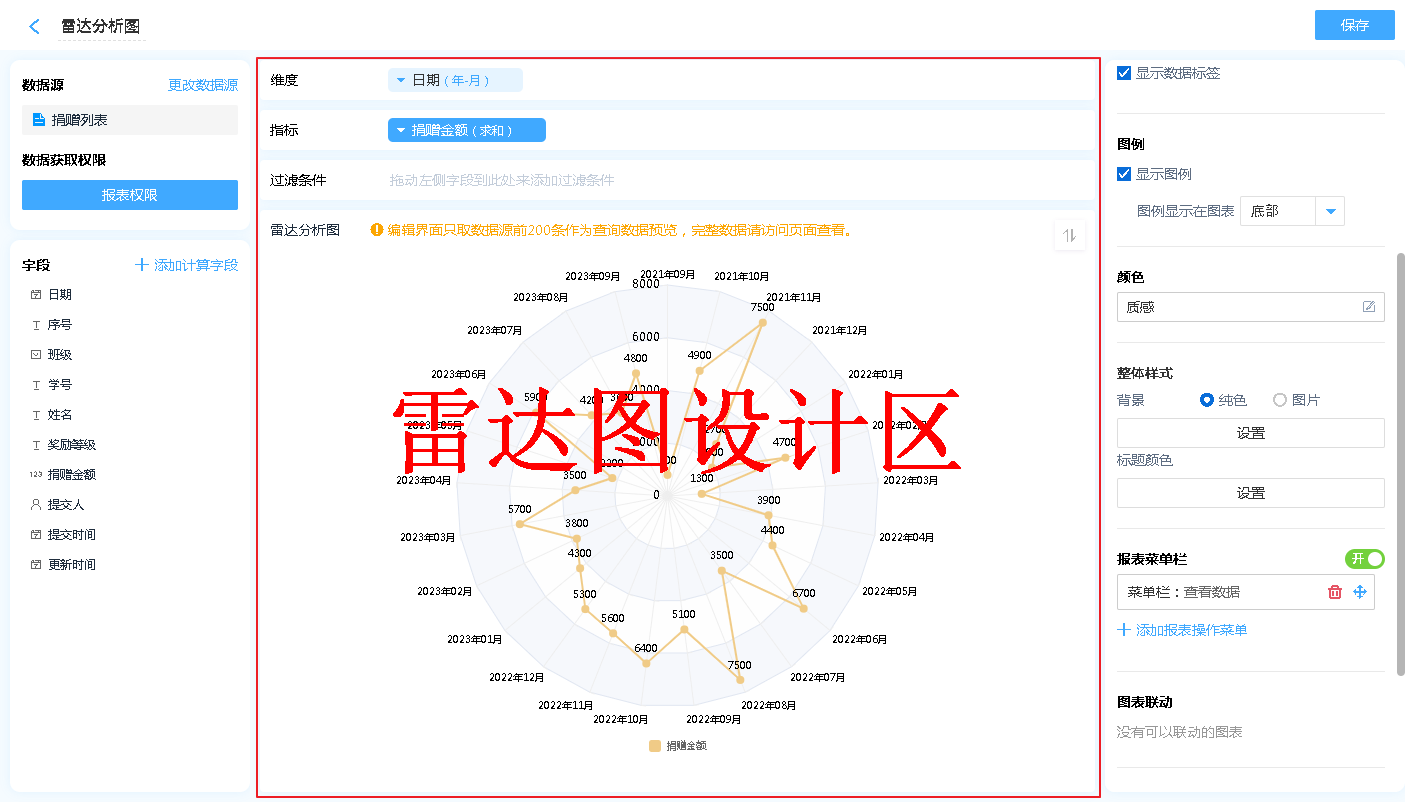 数据源就是指当前雷达图表的数据来源,可以是表单、数据视图。