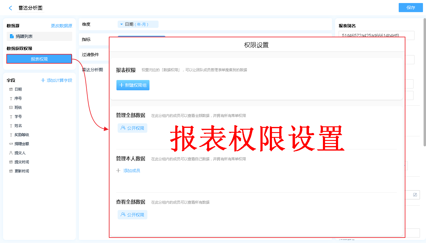报表权限是指该报表的数据哪些人可以操作报表的数据,分别有什么操作权限。