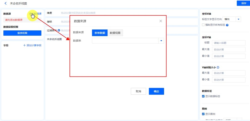 数据源就是指当前折线图表的数据来源,可以是表单、数据视图。