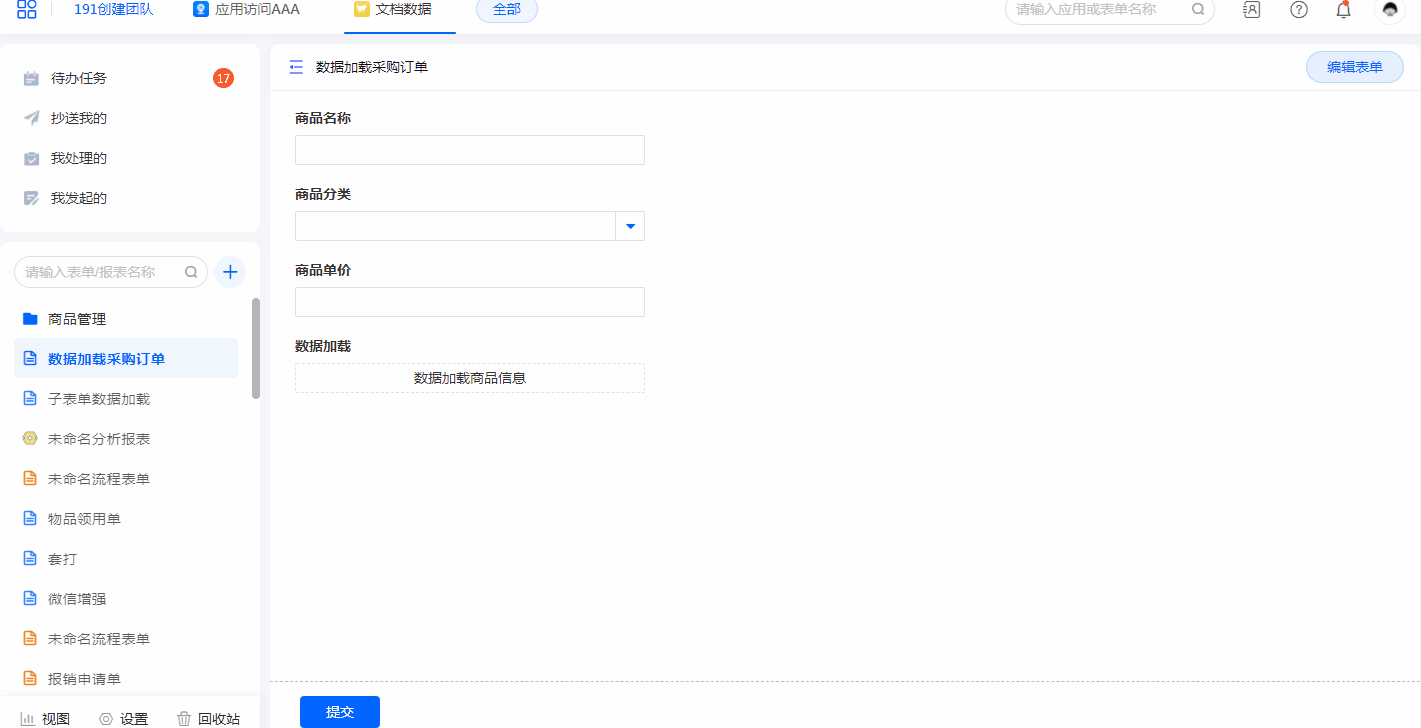 • 弹出表单 点击对应菜单按钮后,在当前报表页面 弹出一个新的页面,在此页面加载指定表单的内容。