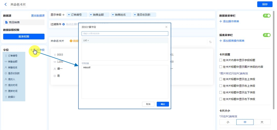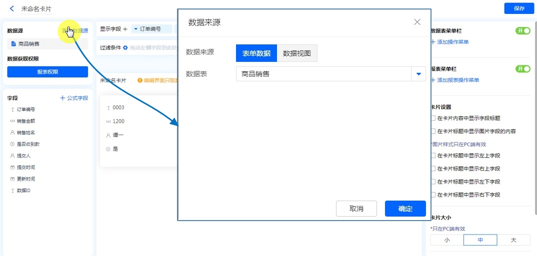 数据源就是指当前卡片场景报表的数据来源,可以是表单、数据视图、聚合表。