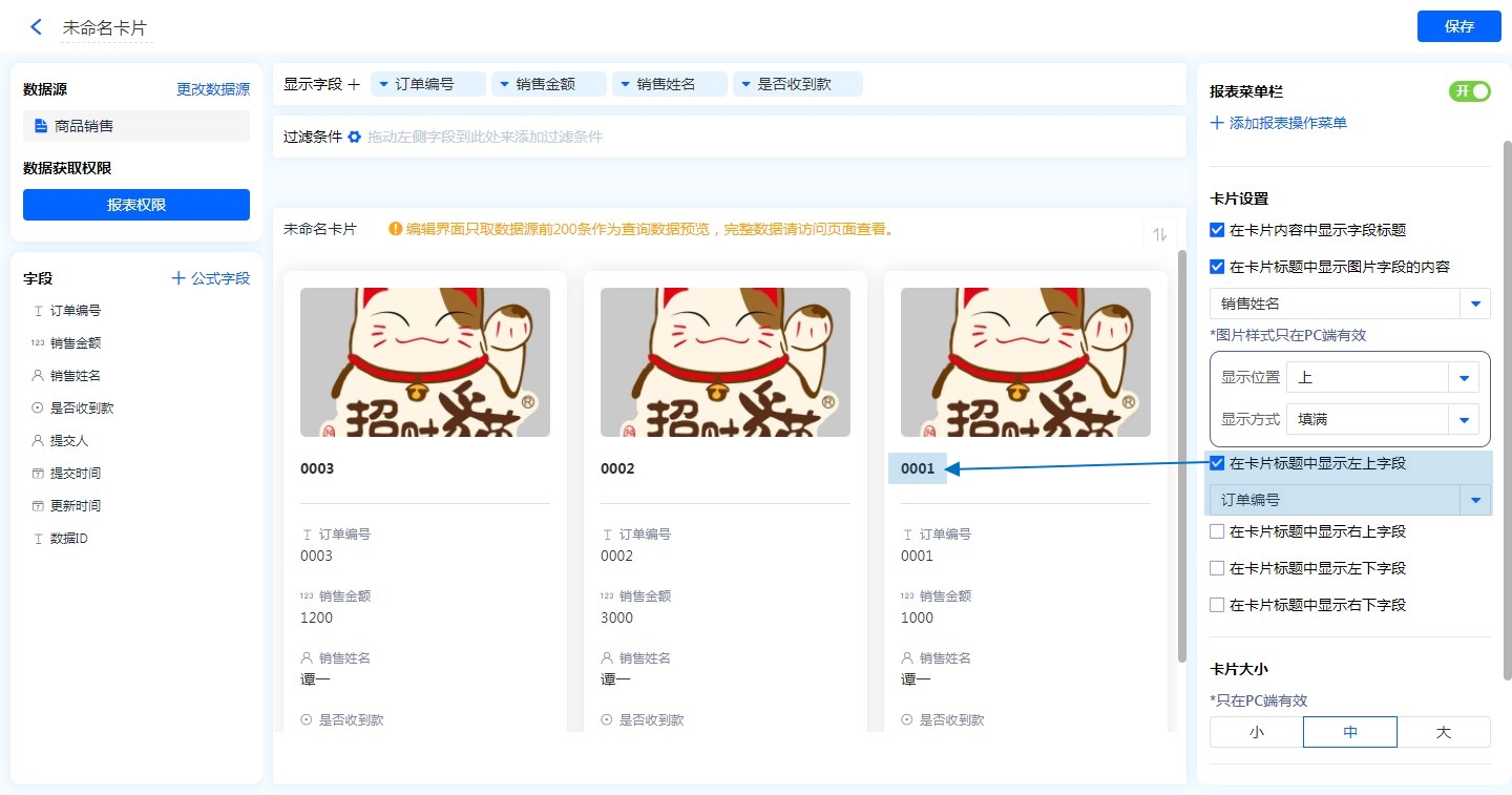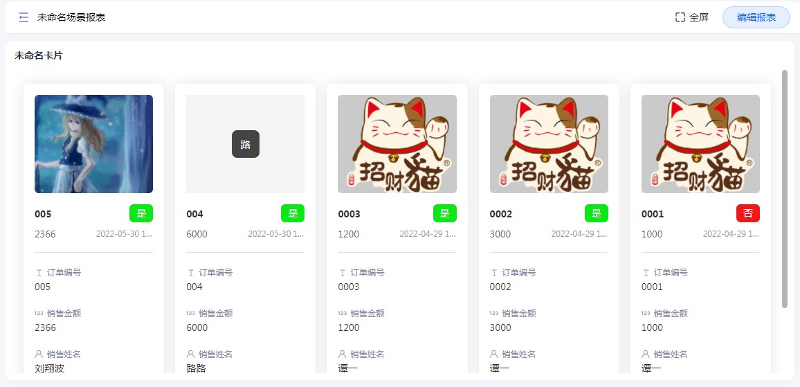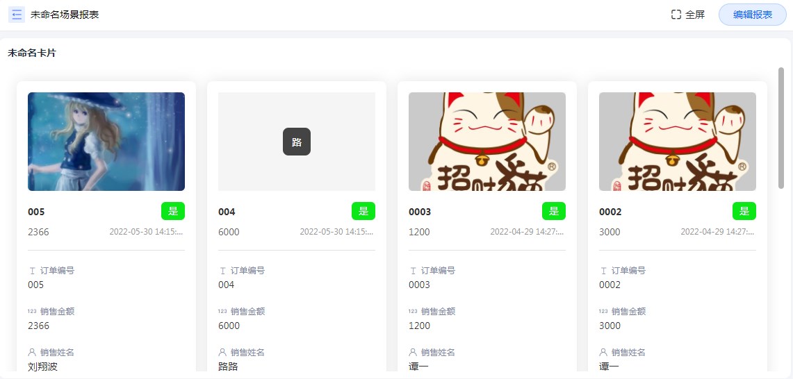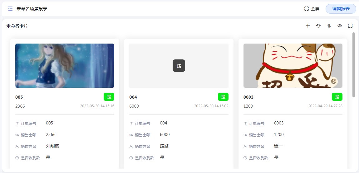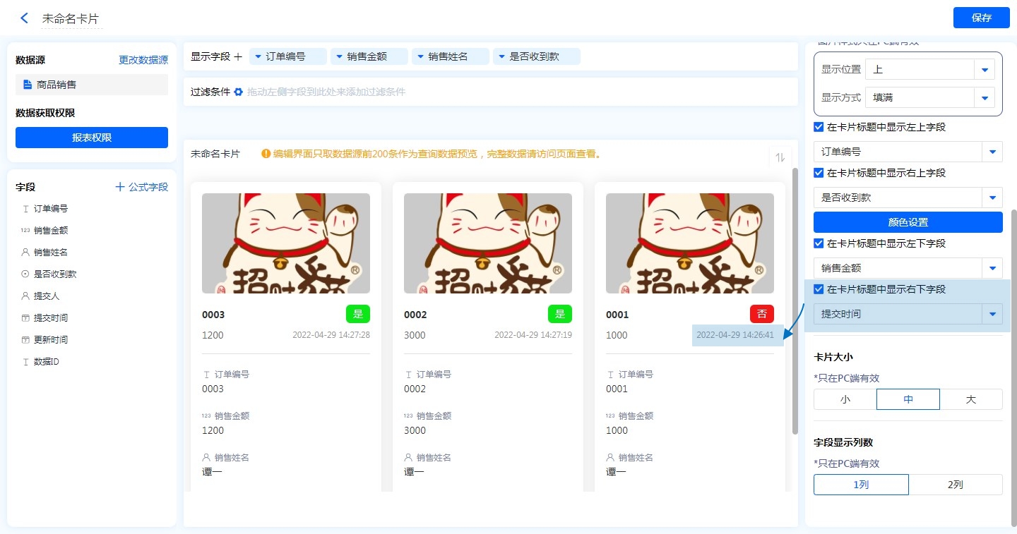 使用卡片报表,可以非常直观的找到自己想要的数据。
