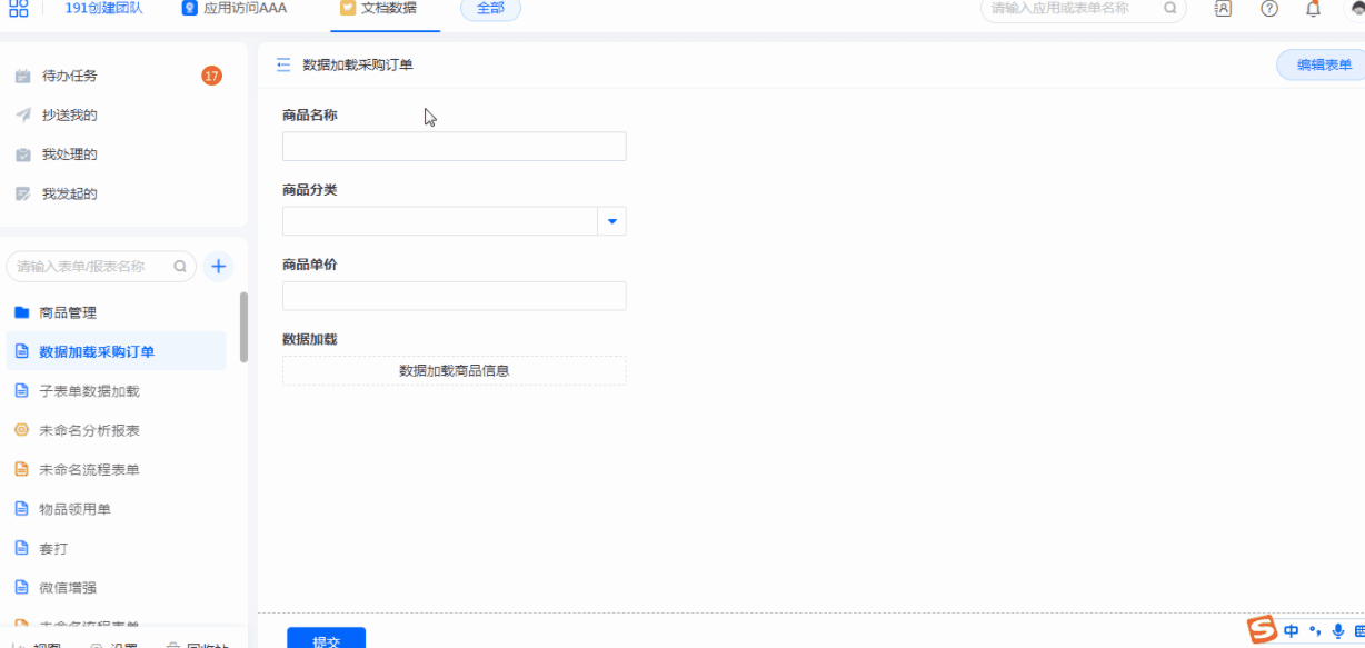 • 弹出表单 点击对应菜单按钮后,在当前报表页面 弹出一个新的页面,在此页面加载指定表单的内容。