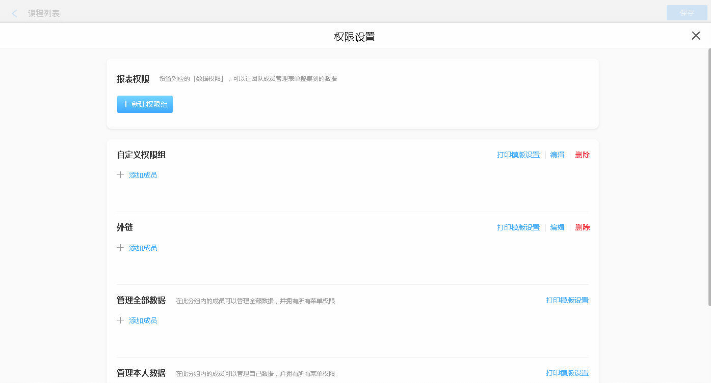 报表菜单栏和数据表菜单栏,在设置后,默认是不开启状态,需要进行对应的权限设置。