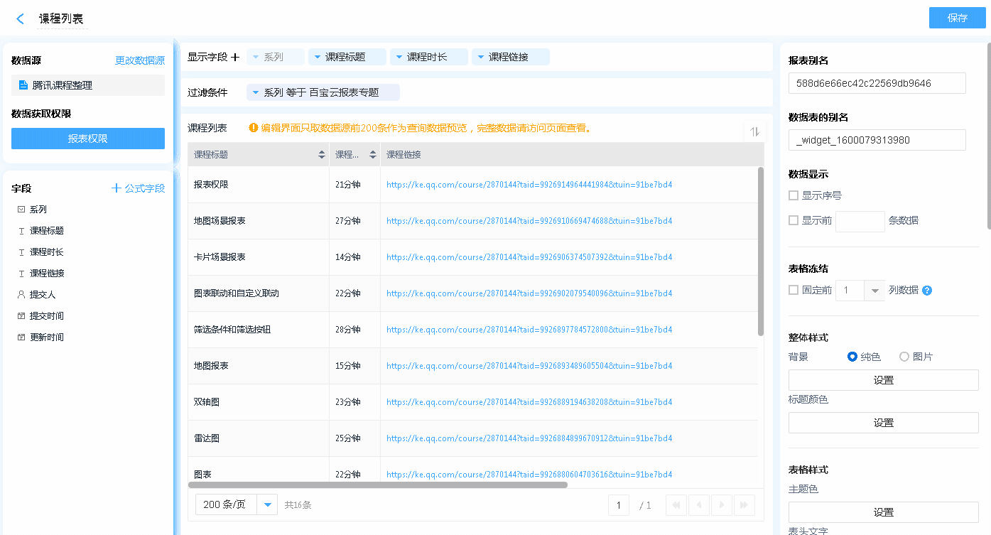 报表名称 数据源 权限名称 数据表菜单 报表菜单