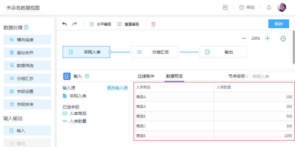 根据“分组字段”相同内容的数据进行分组,汇总“计算字段”的数值,进行求和、平均、取最大值或最小值、计数、去重计数,等汇总处理。