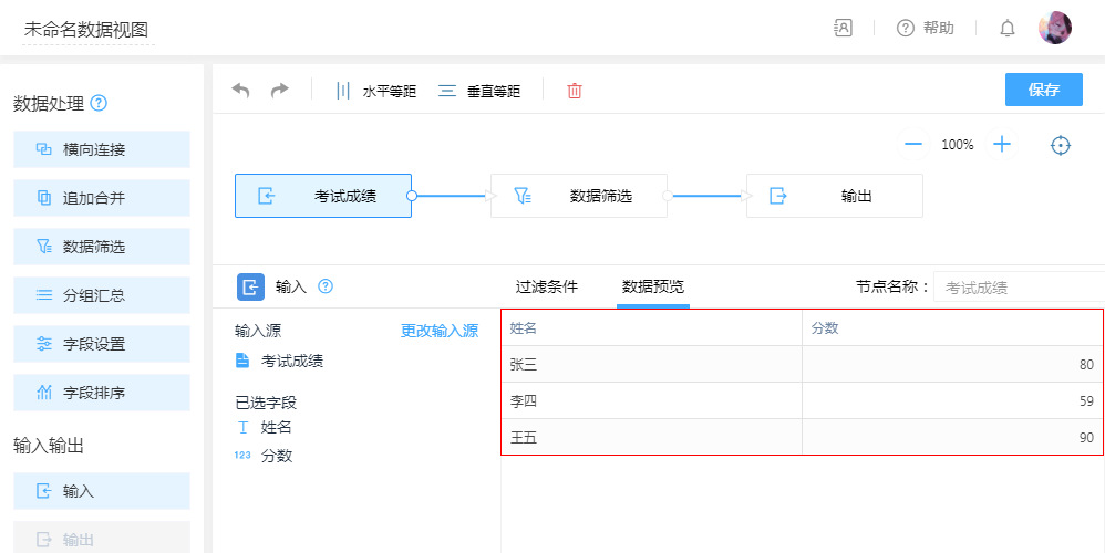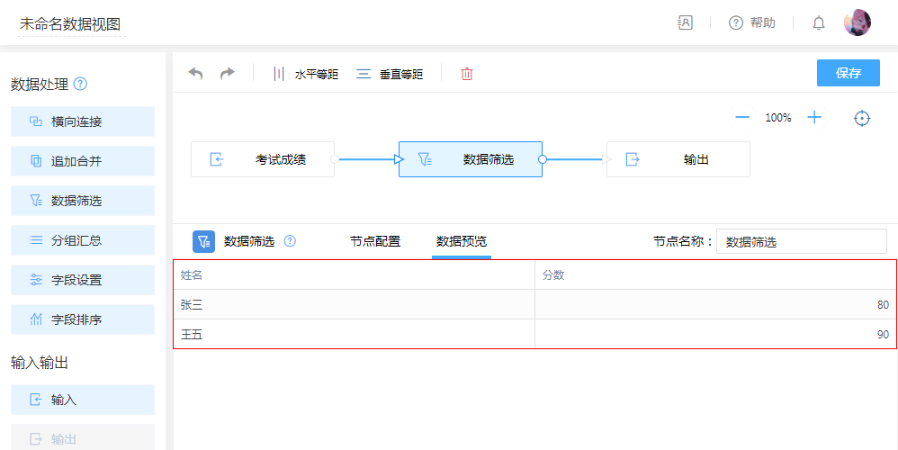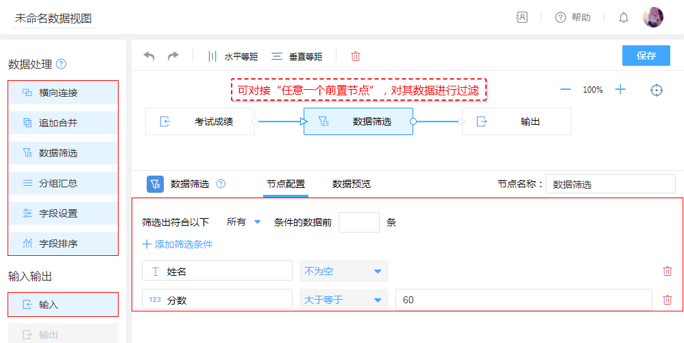 根据配置条件筛选后,只允许符合条件的数据通过。