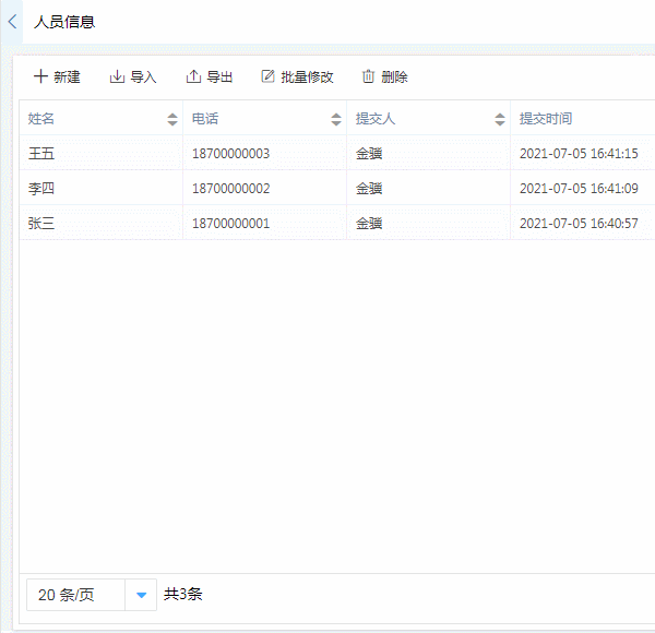 联动“人员信息”数据,对子表单进行批量联动,条件不符的数据转新增。